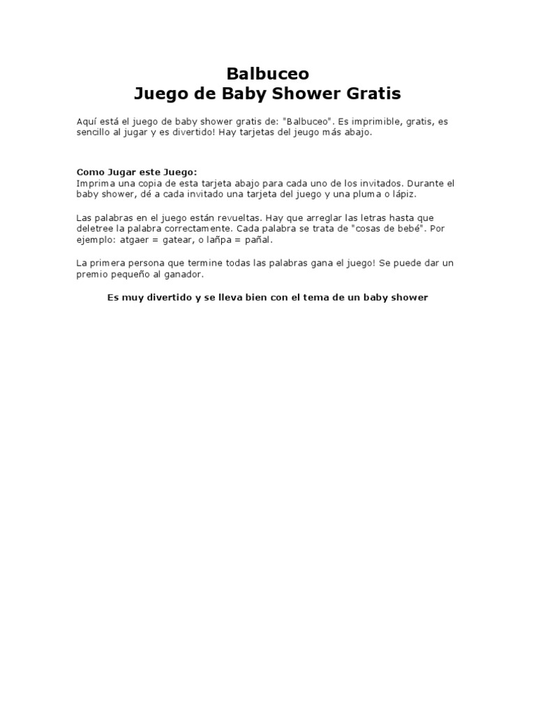 La actividad se desarrolla así: Haz que los invitados usen una pelota de tenis u otra pelota pequeña para botarlas. No obstante, siempre podemos llevar preparados algunos juegos a nuestra fiesta de. Muchos juegos para baby shower para imprimir gratis y en variados modelos.los juegos más divertidos, los clásicos, modernos y mixtos dado el éxito de los 5 juegos de baby shower que les compartí hace unos meses les traigo 5 juegos más para imprimir y divertirte montones en ese super. Si esperas un bebé y te lanzas a organizar una fiesta para celebrar su nacimiento no olvides preparar algunos juegos para baby shower con los que pasar una entretenida jornada.